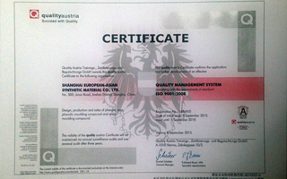 九游网页版(shanghai European-Asian Synthetic Material Co.,Ltd.,简称EASY),是成立于1992年的沪港合资企业,是中国著名的专业从事热固性酚醛树脂、塑料、复合材料及其制品的研究、开发和生产制造商之一。新工厂位于上海金山第二工业区,占地近24000m2,建筑面积约20000m2,新工厂以国内一流、国际先进的标准新建,采用自动化系统进行树脂和模塑料生产,并投入大量财力物力进行环保、安全等配套。EASY现生产能力达到年产树脂25000吨,模塑料50000吨。近一半的产品出口到美国、日本、澳大利亚、韩国、东南亚、香港等国家和地区,取得了良好的声誉。